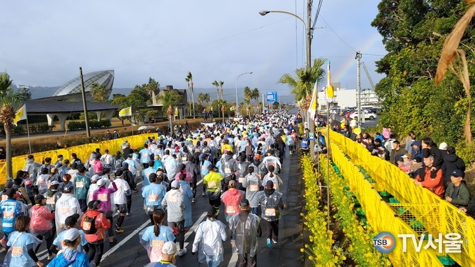 [TV서울=이천용 기자] 2026 제43회 이브스끼 유채꽃 마라톤대회가 11일 오전 9시 이브스끼시 운동장에서 15개 국에서 1만 2천여 명이 참가한 가운데 개최됐다. 풀코스.12km. 종목으로 진행된 이날 대회에는 국민마라토너 이봉주 선수도 참가해 12km를 완주했다. 한국에서는 대한생활체육 마라톤협회 이규운 회장 등 40여 명이 참가했다. 주최측은 하프 지점에서 선수들에게 이게다 호수와 온천욕으로 족욕을 제공했다.