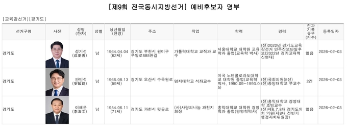 [TV서울=김수인 경기본부장] 오는 6월 3일 실시되는 제9회 전국동시지방선거에서 치러지는 경기도교육감선거에 출마하기 위해 제17·18·19·20·21대 국회의원을 지낸 안민석 명지대 석좌교수를 비롯해 성기선 가톨릭대 교직과 교수 이해문 (사)사랑의나눔 과천지회장 등이 지난 3일 예비후보 등록을 마쳤다.