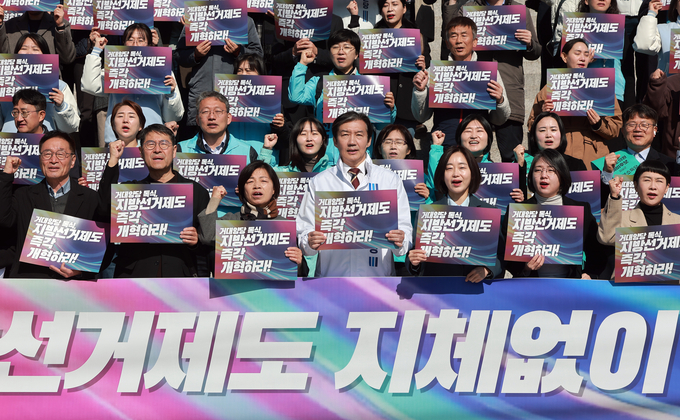 혁신당 조국 대표는 "낡은 독점구조를 혁파하지 않고는 지방정치의 변화도, 혁신도, 지역민 삶의 혁신도 기대할 수 없다"며 중대선거구제 전면 도입, 자치단체장 결선투표제, 지방의회 연동형 비례대표제 등을 언급하며 "반드시 이번 3월 내에 모두 처리돼야 한다"고 말했다.