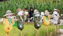 [TV서울=박양지 기자] 절기상 추분을 하루 앞둔 22일 경기도 수원시 권선구 국립농업박물관에서 누렇게 익어가는 벼 옆에 허수아비가 세워져 있다.