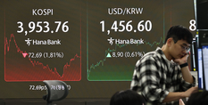 [TV서울=박양지 기자] 코스피가 5일 미국 기술주 급락에 덩달아 휘청이며 장 초반 4,000선을 내줬다. 이날 오전 9시 23분 기준 코스피는 전장보다 154.20포인트(3.74%) 내린 3,967.54다. 지수는 전장보다 66.27포인트(1.61%) 내린 4,055.47로 출발해 낙폭을 키우고 있다. 지수는 지난달 27일 장중 사상 처음 4,000선을 돌파한 지 7거래일 만에 3,900대로 밀려났다. 서울 외환시장에서 달러 대비 원화 환율은 전날보다 5.6원 오른 1,443.5원에 거래를 시작했다. 한때 1,446.3원까지 올라 7개월 만에 가장 높은 수준을 나타내기도 했다. 유가증권시장에서 외국인이 4천543억원 순매도하며 전날에 이어 '팔자'를 나타내고 있다. 전날 외국인은 유가증권시장에서 2조2천280억원어치 순매도해 4년 3개월 만에 가장 많이 순매도한 바 있다. 개인과 기관은 각각 1천682억원, 3천261억원 매수 우위를 보이고 있다. 외국인은 코스피200선물시장에서도 49억원 순매도 중이다. 간밤 뉴욕증시는 기술주를 중심으로 고점 부담이 가중되며 차익 매물이 출회, 3대 지수가 일제히 하락했다. 특히 나스닥지수가 2.04% 급락해 낙폭이 두드