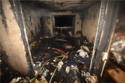 [TV서울=변윤수 기자] 17일 서울 마포구 창전동 한 아파트에서 화재가 발생, 소방대원들이 잔불을 정리하고 있다.