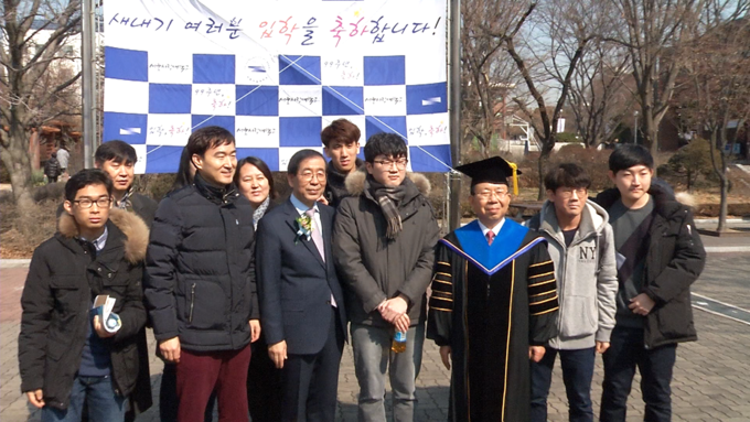 박 시장은 새로운 도전을 시작할 신입생들에게 희망과 격려의 메시지를 전하고, 단과대별 대표들에게 장학증서를 수여했다.