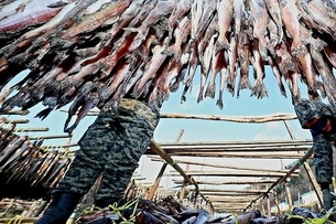 [TV서울=박양지 기자] 한파가 몰아친 28일 오전 강원 인제군 용대리의 한 황태덕장에서 주민들이 명태를 덕장에 내거는 덕걸이 작업을 하고 있다.