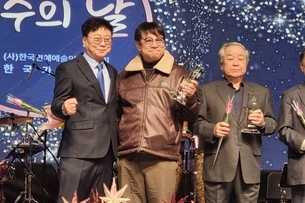 [TV서울=박양지 기자] ㈜쓰리나인종합미디어는 13년 동안 가족 버라이예능쇼 노래하는 가요청백전 영일레븐쇼, 트롯파이터 등을 제작해 온 이원찬 감독이 지난 12월 22일 안양문화예술센터에서 한국연예예술인협회 가수협회(회장 윤금천)가 주최한 가수의 날 시상식에서 ‘가수들이 직접 뽑은 PD상’을 수상했다고 밝혔다. 이 감독은 방송 12주년을 맞은 가요 예능 프로그램 ‘노래하는 가요청백전’의 연출 감독으로, 가수 강진의 ‘막걸리 한잔’, ‘문풍지 우는 밤’ 등 수많은 뮤직비디오 연출도 맡아 왔다. 이원찬 감독은 수상소감을 통해 “십여 년 동안 가요 예능 프로그램 총 연출을 맡아 오면서 다수의 프로그램을 연출한 공로를 인정받은 것 같아 기쁘다”며 “이 상에 만족하지 않고 더욱 열심히 현업에서 활동할 것”이라고 말했다. 한편, 이원찬 감독은 아역배우 출신 감독으로 연출가이자 작사가로 활발하게 활동하고 있다.